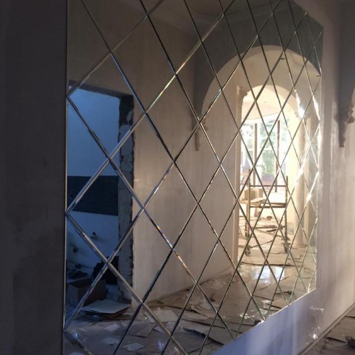 Использована серебряная зеркальная плитка «вытянутый ромб».